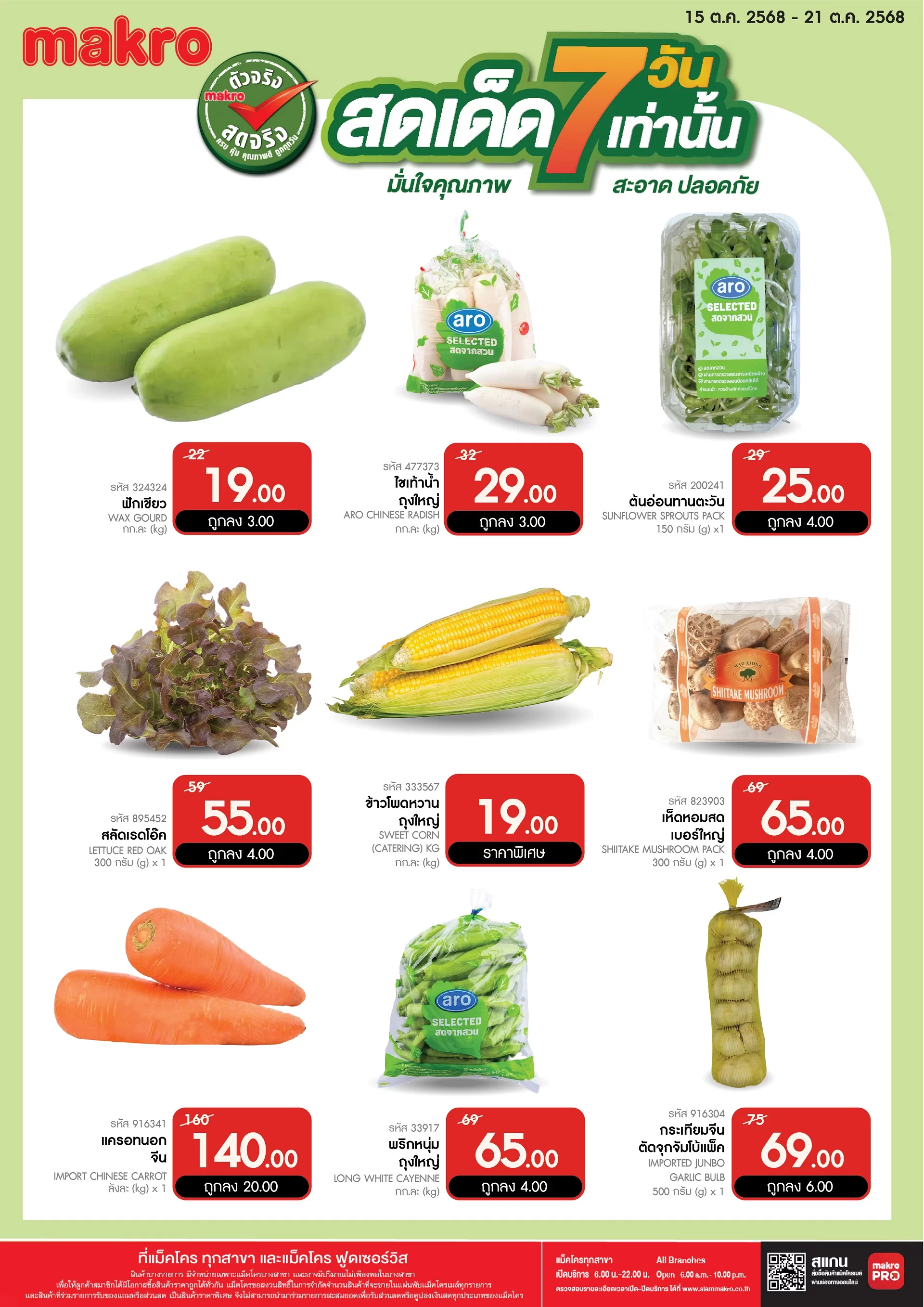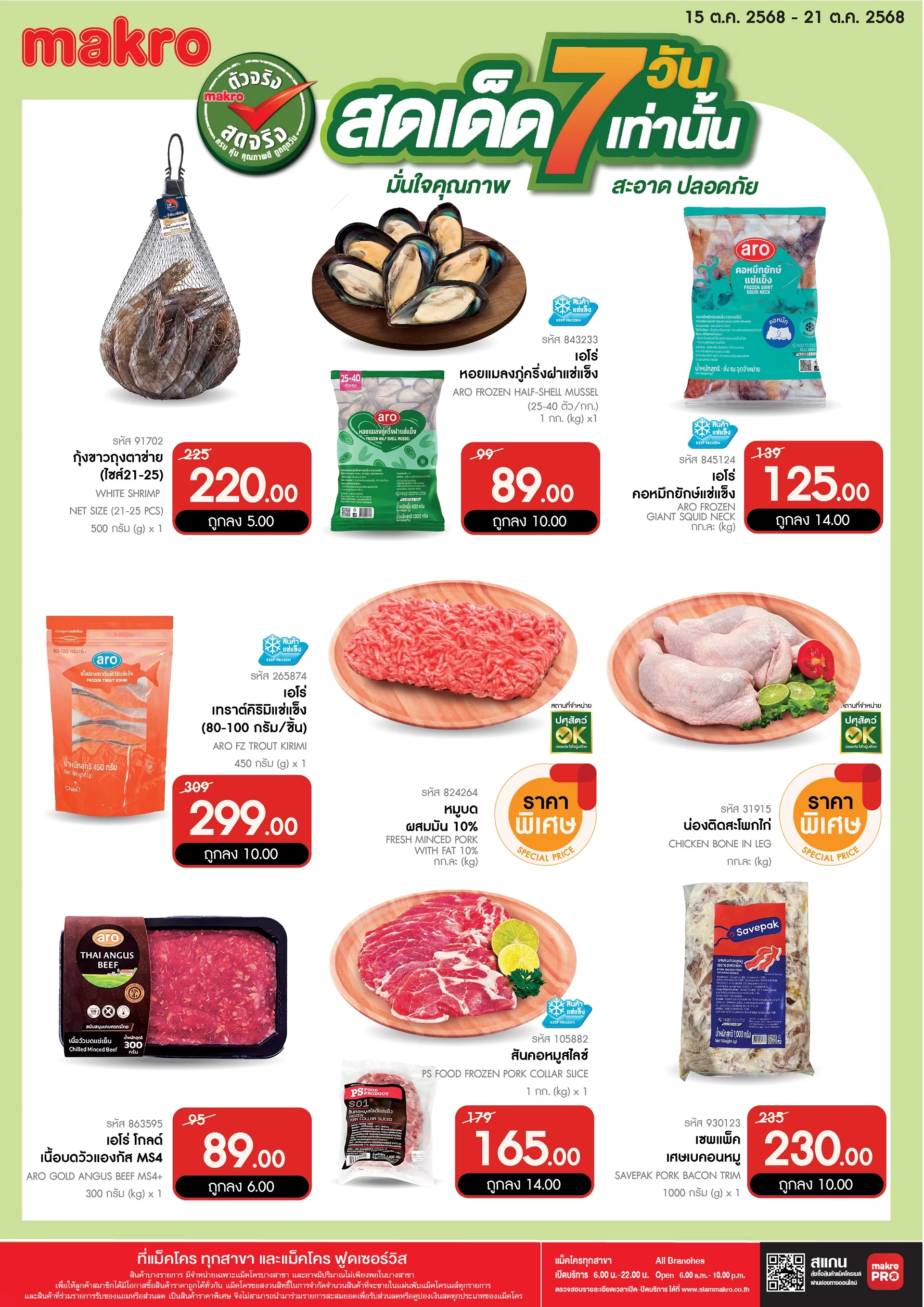 สดทุกสิ่ง สดทุกวัน เลือกซื้ออาหารสดเข้าร้าน หรือเข้าบ้าน ผักผลไม้ อาหารทะเลสด แซลมอนสด ปลาสด ปลาหมึก ปู กุ้ง หอย ไข่ไก่ เนื้อสัตว์สด เนื้อไก่ เนื้อหมู เนื้อวัว ก็มั่นใจคุณภาพ สะอาด ปลอดภัยได้ เพราะเราคือ แม็คโคร ผู้นำอาหารสด ตัวจริง