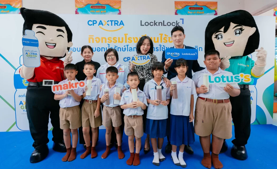 The initiative aims to encourage students to reduce single-use plastic consumption and to instill environmental awareness among youth. As part of the campaign, CP AXTRA and LocknLock presented eco-friendly LocknLock “Tumble” bottles to students at Wat Ban Phrao Nai School in Pathum Thani province, marking the pilot phase of this collaborative project.