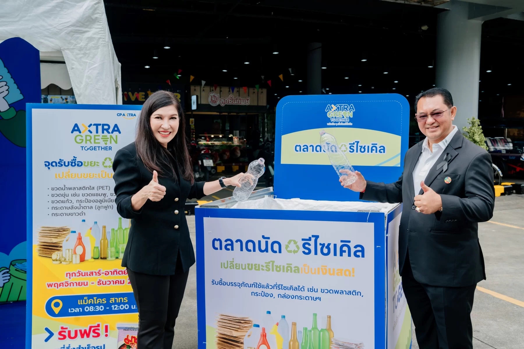 กรุงเทพฯ 10 พฤศจิกายน 2568 - บริษัท ซีพี แอ็กซ์ตร้า จำกัด (มหาชน) ผู้ดำเนินธุรกิจค้าส่งค้าปลีก ‘แม็คโคร-โลตัส’ เดินหน้าสร้างความยั่งยืน ผ่านแคมเปญ “AXTRA Green Together” ภายใต้แนวคิด ‘พลังเล็ก ๆ เพื่อโลกที่ยั่งยืน ผ่านการคัดแยกขยะ โดยล่าสุด ร่วมกับ บริษัท เวสท์บาย เดลิเวอรี่ จำกัด เปิดตัวกิจกรรม “Weekend Recycle Market ตลาดนัดรีไซเคิล ‘รักษ์โลก สร้างรายได้’” เพื่อส่งเสริมการคัดแยกขยะอย่างถูกวิธี ทุกวันเสาร์-อาทิตย์ จนถึงสิ้นปี 2568 ที่แม็คโครและโลตัส 10 สาขาในกรุงเทพฯ พร้อมกันนี้ ยังได้จัดทำโครงการ “RVM by CP AXTRA x Wastebuy” เพื่อติดตั้งเครื่องรับคืนบรรจุภัณฑ์อัตโนมัติ (Reverse Vending Machine – RVM) ในการอำนวยความสะดวกให้ประชาชนสามารถนำขวดพลาสติก มาส่งคืนได้ตลอดเวลา พร้อมรับคะแนนสะสมผ่านระบบดิจิทัล โดยขวดที่เก็บรวบรวมจะถูกนำเข้าสู่กระบวนการรีไซเคิลต่อเนื่อง เพื่อสร้างเศรษฐกิจหมุนเวียนและทรัพยากรที่ยั่งยืน โดยมี นายพรพรหม วิกิตเศรษฐ์ ผู้บริหารด้านความยั่งยืนของกรุงเทพมหานคร และ ที่ปรึกษาของผู้ว่าราชการกรุงเทพมหานคร และ ดร.ผานิต รัตสุข ผู้อำนวยการกองจัดการกากของเสียและสารอันตราย กรมควบคุมมลพิษ ให้เกียรติร่วมงานเปิดตัวกิจกรรม